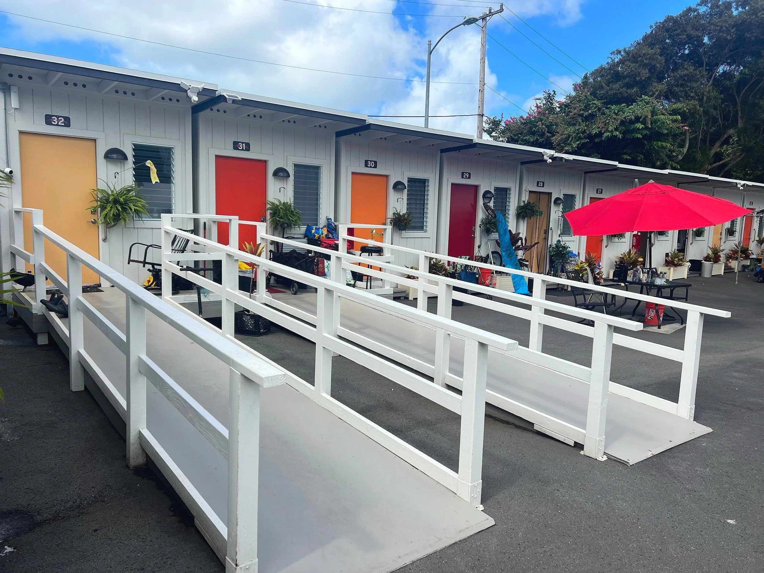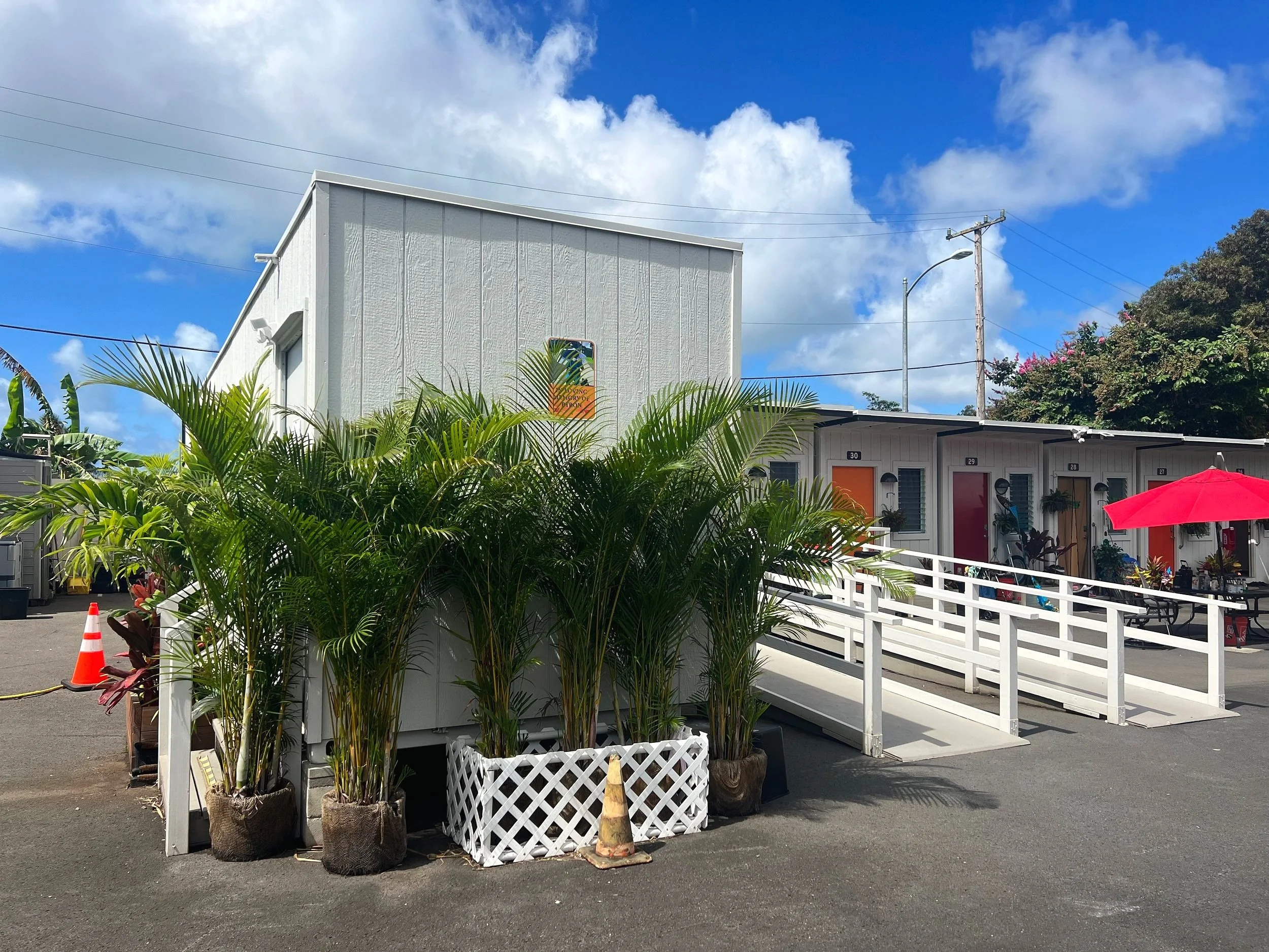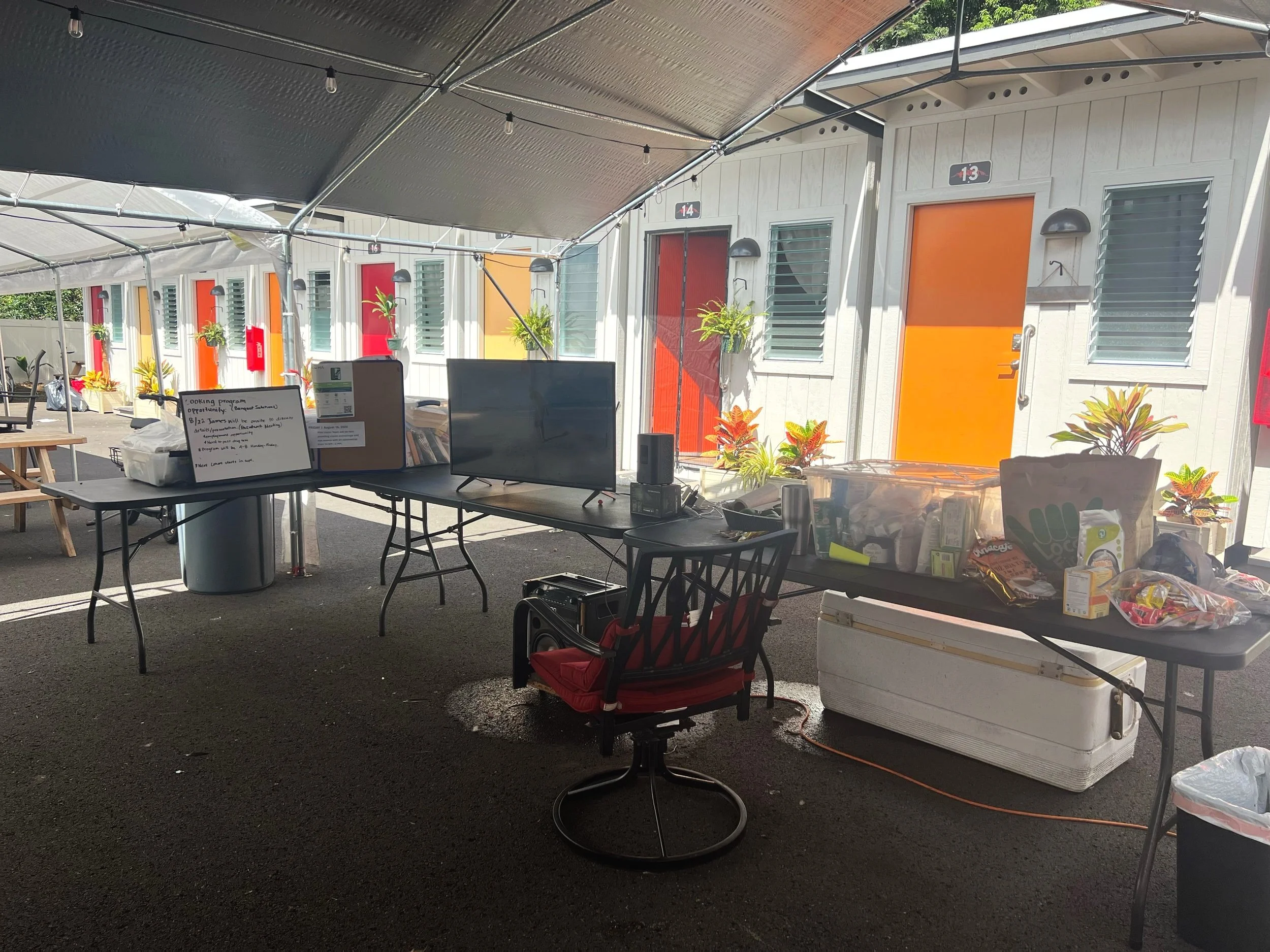The Ka Malu Ko’olau Kauhale is the first long term housing program for houseless individuals, etc. The goal is to provideoptions for those that were unhoused prior to the fire. An around-the-clock tiny home village offering comprehensive medical and case management services. The Ka Malu Ko’olau Kauhale is geared to provide a safe and compassionate place to heal and recuperate, and to provide holistic supportive services in a community setting. This is a village for those who have experienced trauma, to care for each other. We will grow the space together.