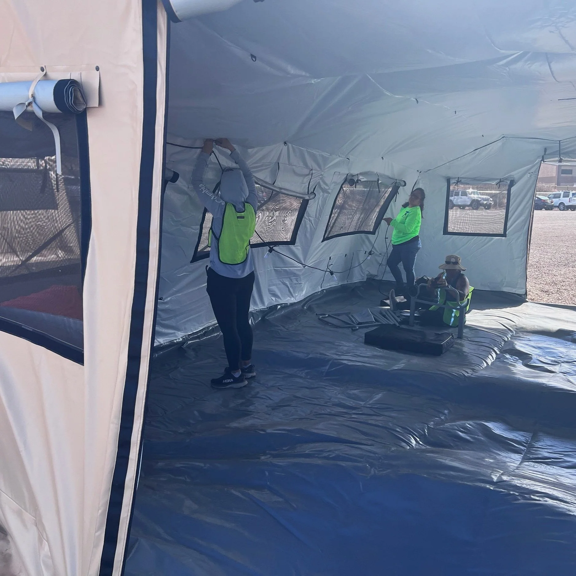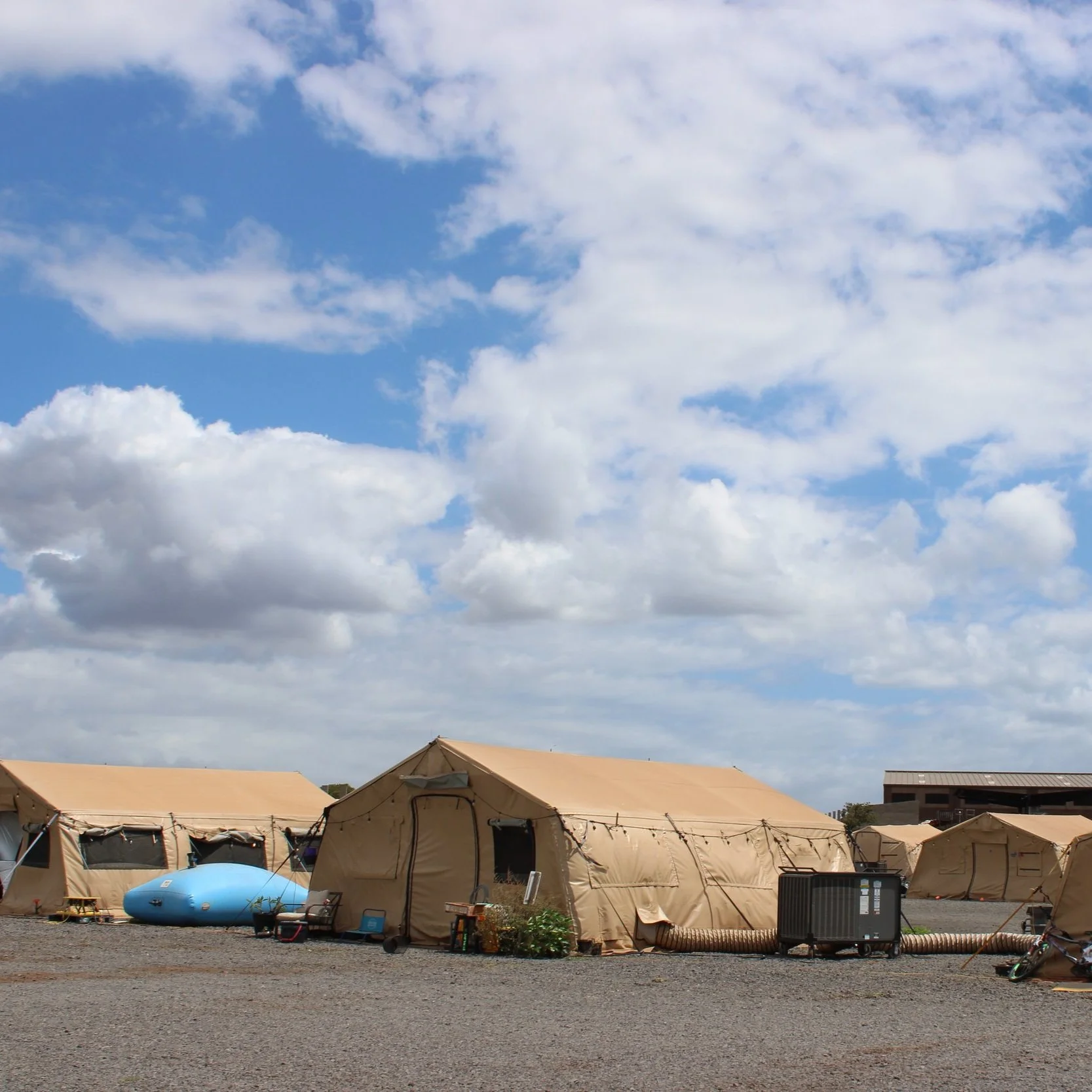 The site will consist of multiple military-grade tents, that can house a total of approximately 150 people. Each tent will be fully insulated and equipped with cots and other supplies.