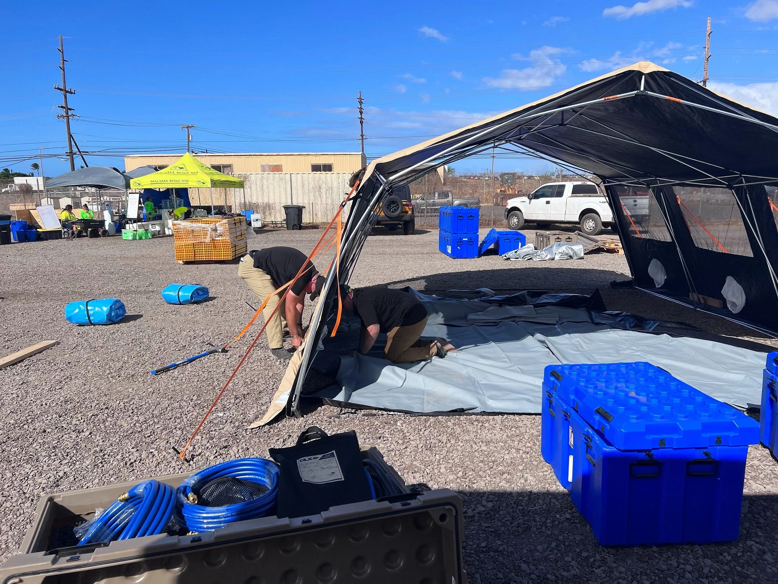 “Our team has been working around the clock to set up this temporary shelter,” said Project Vision Hawai‘i Executive Director Darrah Kauhane. “We are grateful for the opportunity to support our state and Maui wildfire survivors at Pu’uhonua o Nēnē with kōkua from our community partners, Maui Rapid Response and Maui Medics Hui. This type of work is a great example of our holistic approach to healing through health, culture, wellness, and acceptance,” she said.